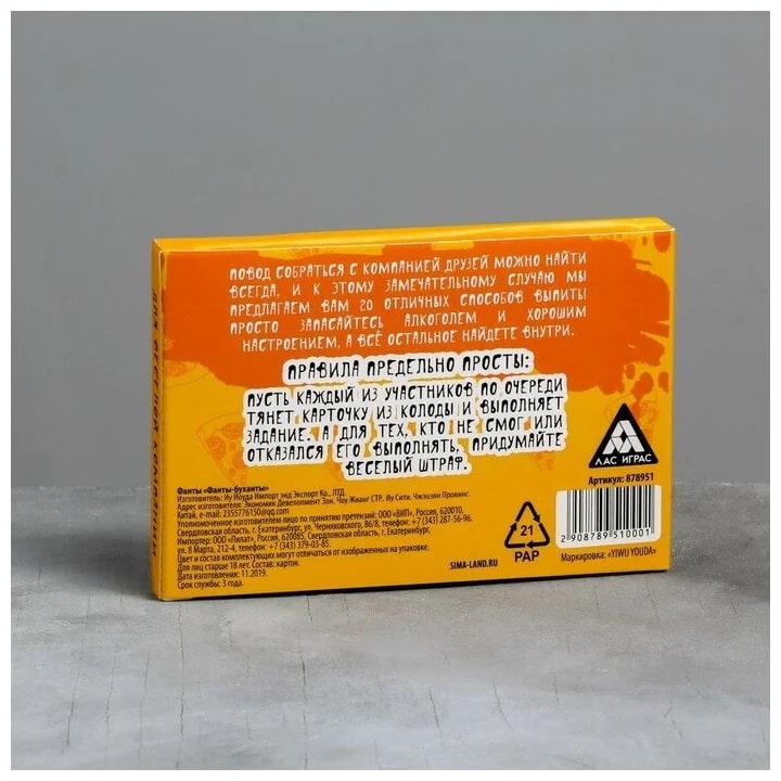 Купить игра для компании "фанты буханты" 20 карт от 100 руб. с доставкой до пункта выдачи в Иннополисе. Интернет магазин ДекаМаркет. Оплата при получении.