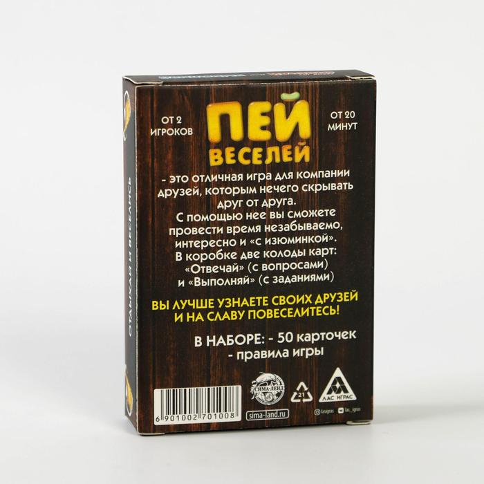 Купить игра для компании "пей веселей" 50 карт от 180 руб. с доставкой до пункта выдачи в Иннополисе. Интернет магазин ДекаМаркет. Оплата при получении.